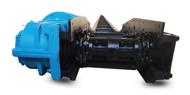 刮板輸送機(jī)的工作原理是將敞開的溜槽作為煤炭、矸石或物料等的承受件,將刮板固定在鏈條上(組成刮板鏈),作為牽引構(gòu)件。